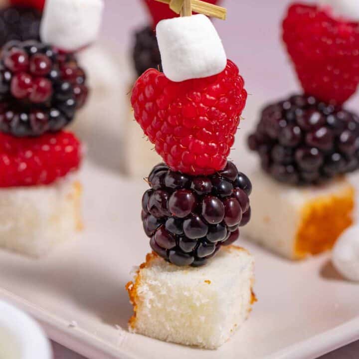 If you want to take this dessert up a notch, melt white chocolate in the microwave and drizzle it over the skewer before serving.